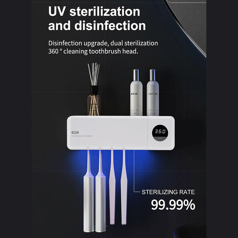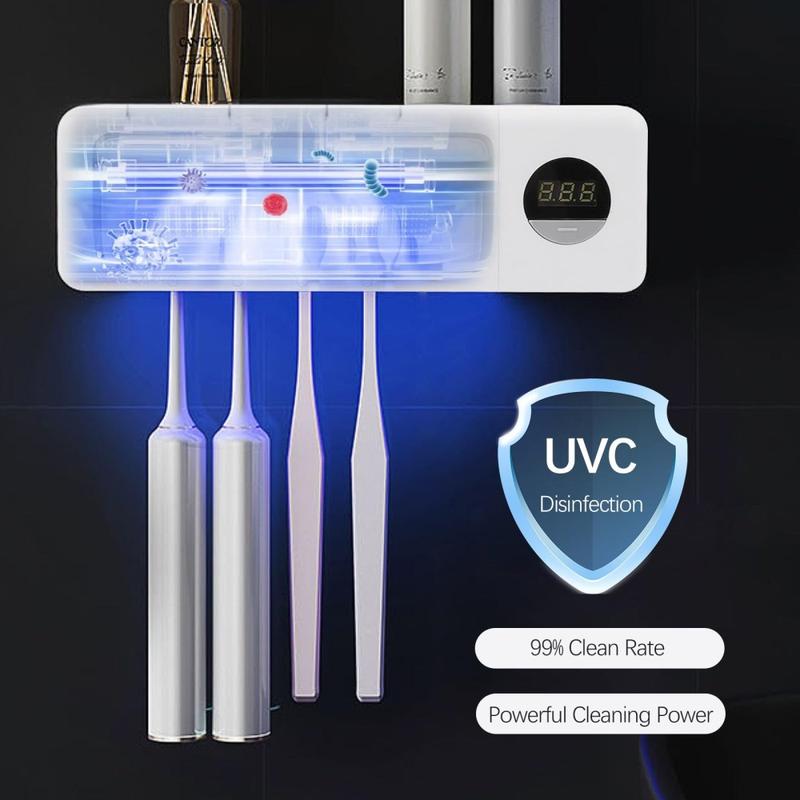Toothbrush Sanitizer UV Sterilizer - Wall-Mounted Toothbrush Holder with Auto Sensor & Digital Display
