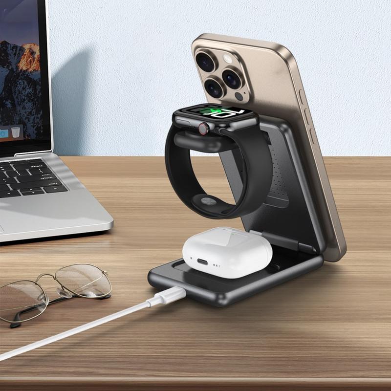 - 3-in-1 Charging Station - Simultaneously charge your phone, earbuds, and watch with one compact device.