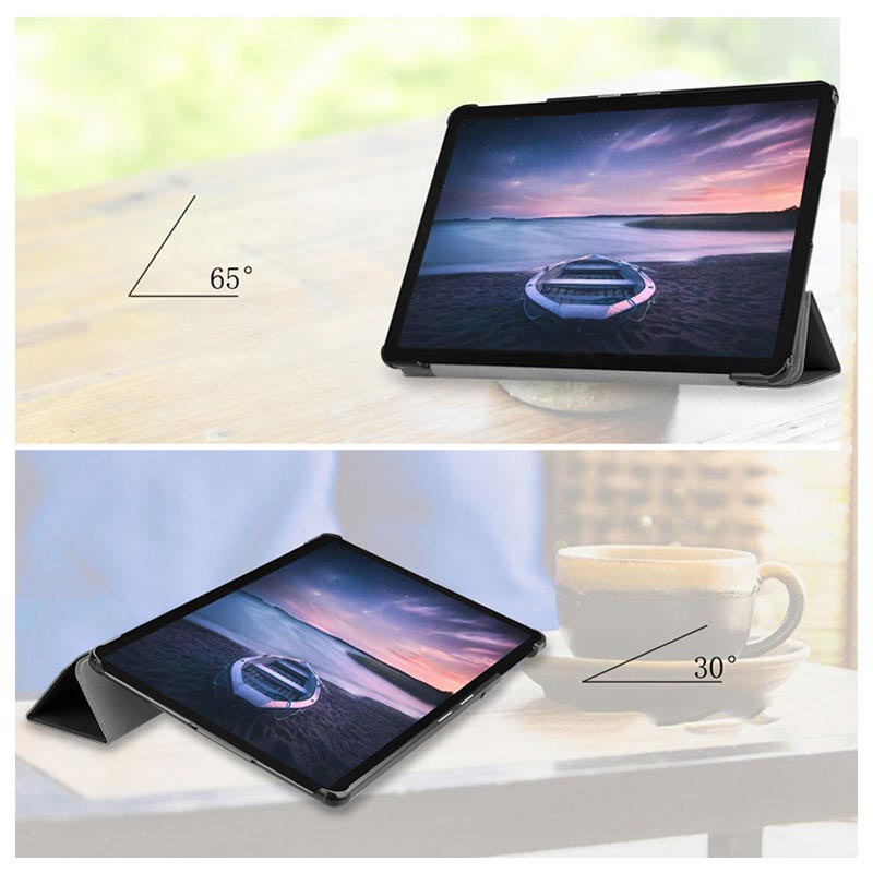 A very practical case for Samsung Galaxy Tab S4 10.5 because it has a foldable front cover that allows you to place your tablet in a perfect position and a smart function that activates the screen of your Samsung Galaxy Tab S4 10.5 when you open the case. Just place your tablet at the appropriate position and surf the web or watch videos easier than before.