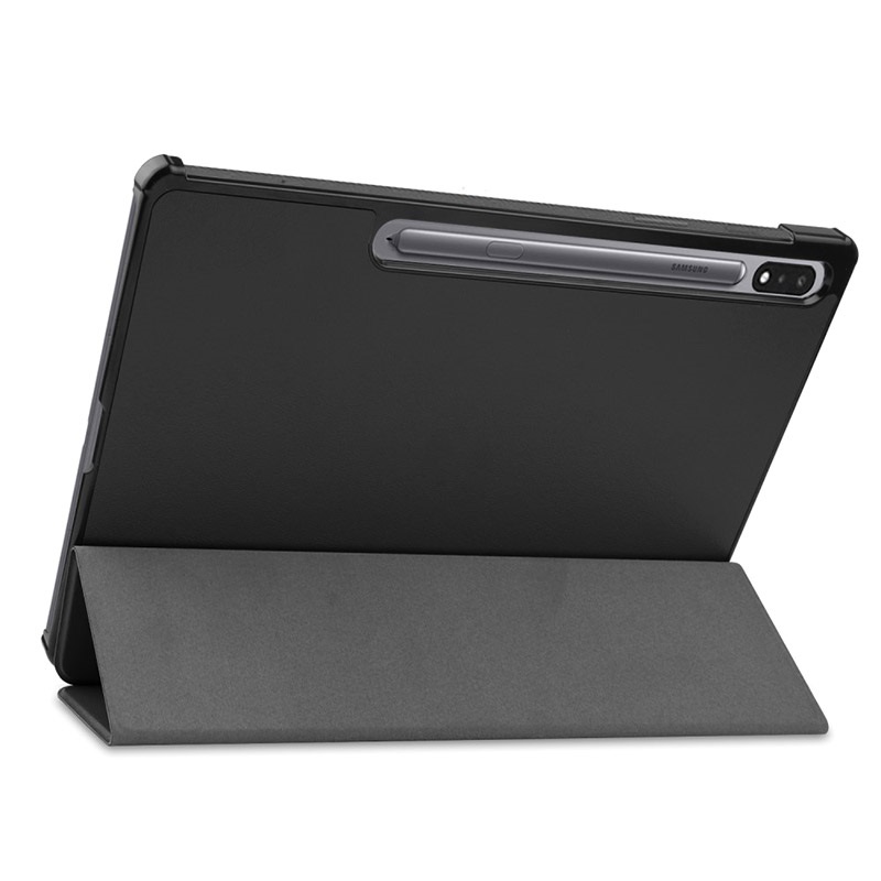 Have an exquisite look and great feel in your hand with your new tri-fold folio case for Samsung Galaxy Tab S7+, Galaxy Tab S8+. Slim and lightweight folio case allow you hassle-free operation and full-screen display. Four corners protect your Samsung Galaxy Tab S7+, Galaxy Tab S8+ from scratching and falls.