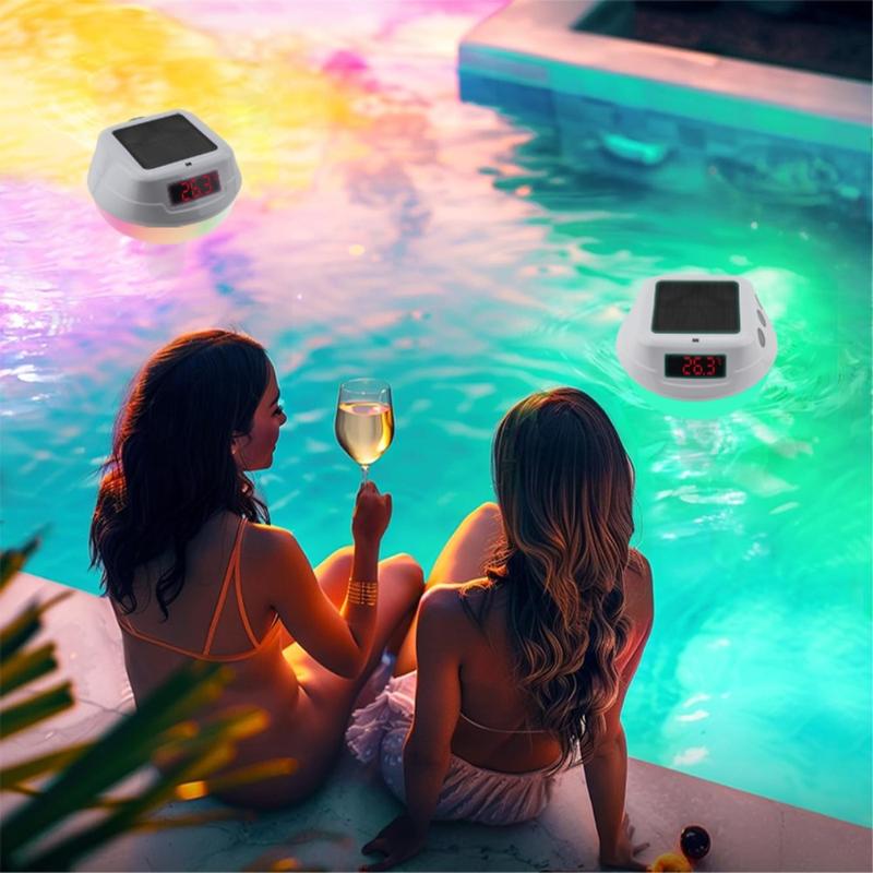 Monitor pool comfort day and night with a floating, solar-powered meter that beams real-time water temperature and vibrant RGB lighting to an indoor display up to 100m away.