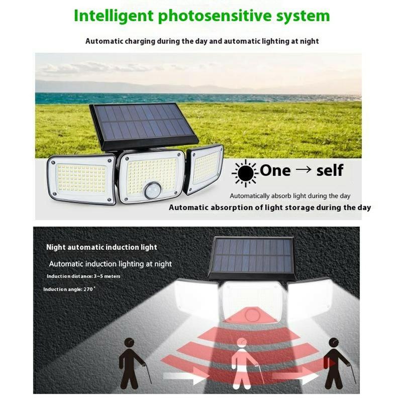 - Wide-Angle Lighting - The three adjustable light heads and solar panel provide a 270° illumination angle, covering a larger area.