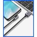 The Ugreen angle cable USB - USB Type C 2m 3A is a USB cable with a USB Type C plug bent at a 90 degree angle, making it perfect for use in tight spaces or when holding your phone horizontally while gaming. The cable is designed for fast charging, with Quick Charge 3.0 technology, and the side plug reduces the risk of damaging the cable while increasing comfort during use. Made of high quality TPE and placed in a strong nylon braid and fishing line, this cable is durable and tangle-free. The current of 3 A and a tin-plated copper wire ensure instant and safe charging, and the cable is compatible with all devices with a USB Type C port.