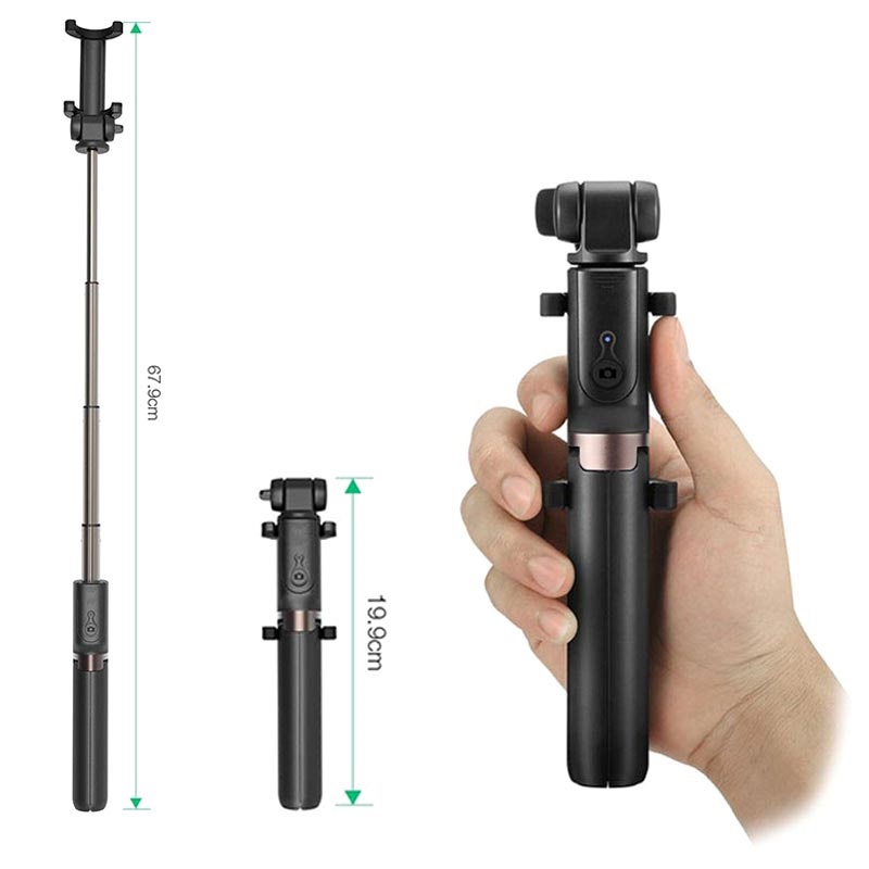 The selfie stick collapses to a miniature size, no bigger than your smartphone, which allows you to carry it in your pocket or purse. The 2-in-1 design eliminates the need for carrying multiple accessories.