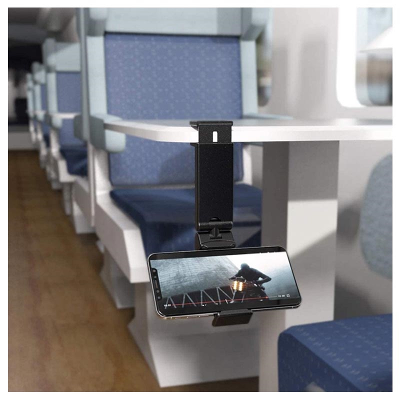 This phone holder is suitable for use on most airplane trays and desks up to 40mm, while the compact foldable design lets you store it into any bag, purse, or pocket.
