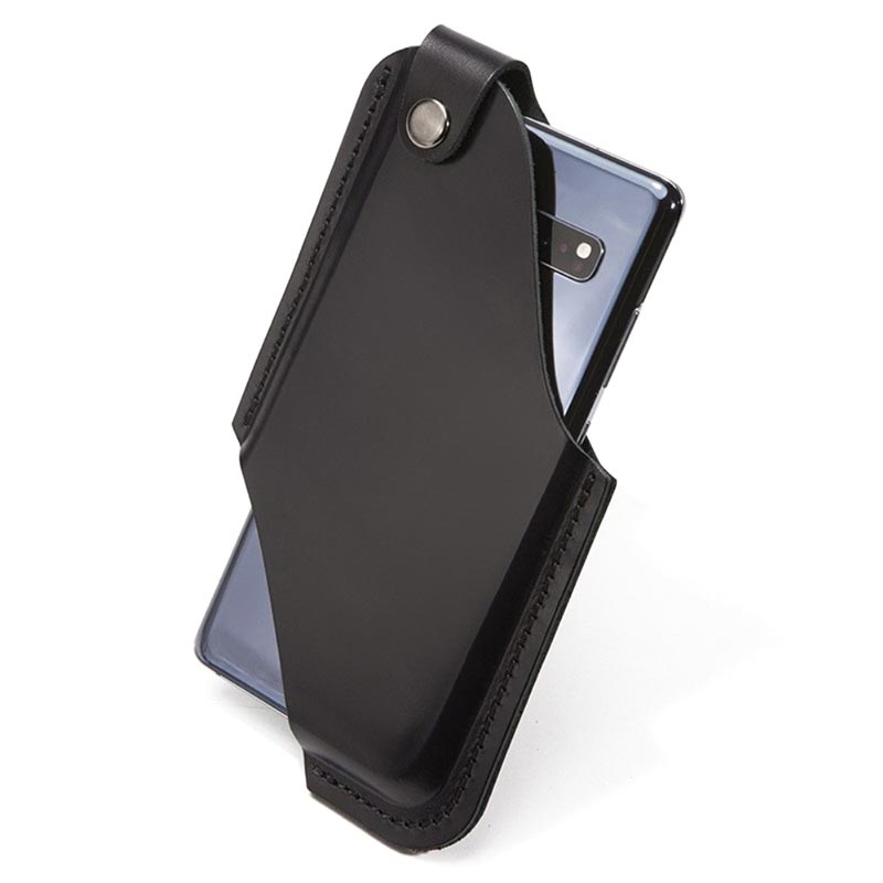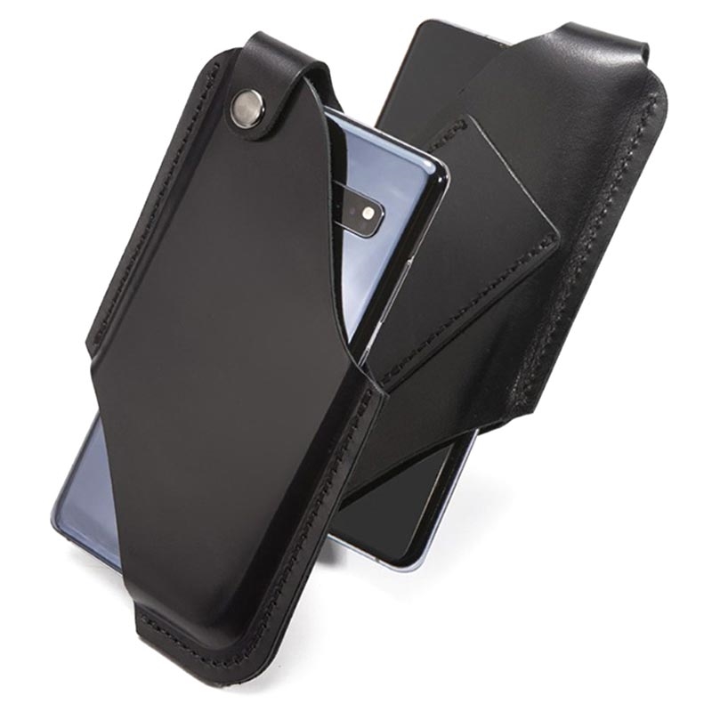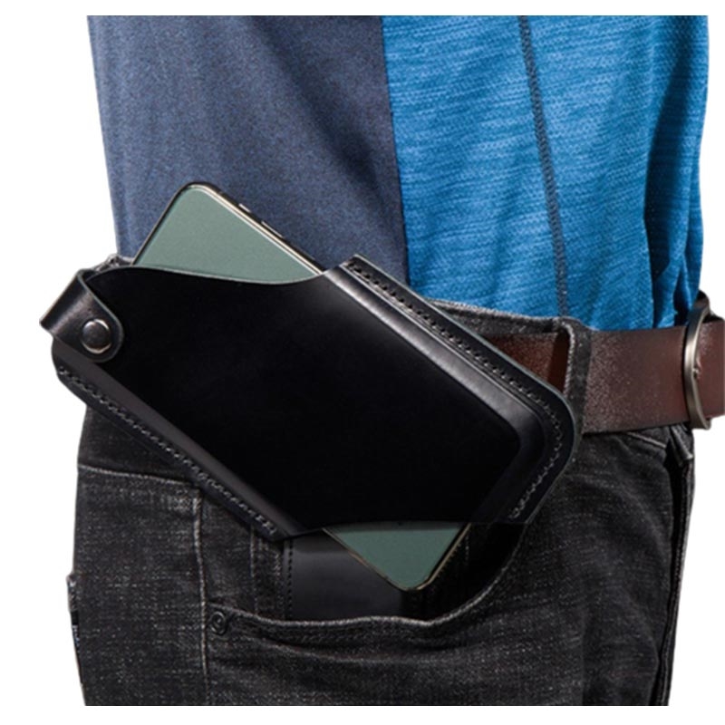 Thin your pockets by carrying your phone around your waist with this genuine leather holster case. The holster leather case fits phones up to 16.5 cm x 8 cm, and the snap fastener ensures the phone holster is safely enclosed. Made of premium genuine leather.