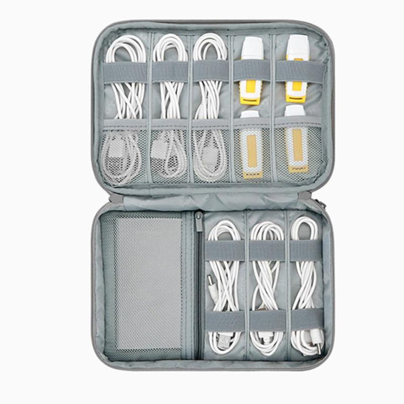 Large capacity for organizing electronics accessories such as USB cable cord, flash drive, wall charger, memory card, hard drive, power bank, earbuds, camera, etc