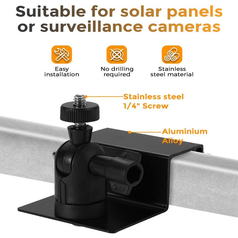 Universal Security Camera Railing and Gutter Mount - 360° Adjustable Aluminum Pan-Tilt Bracket with 1/4" Screw