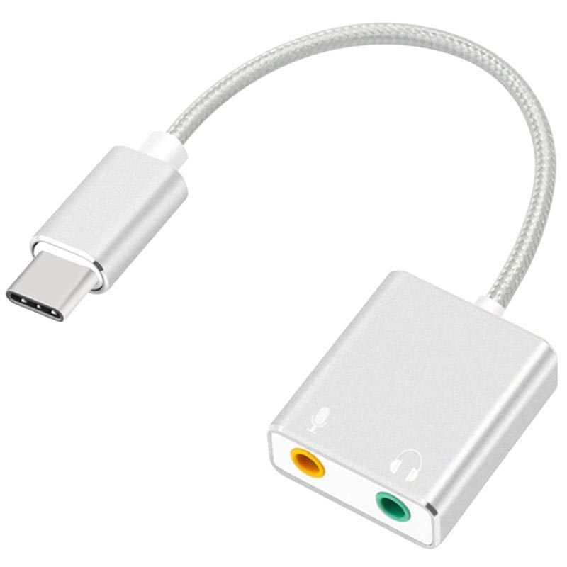 - Practical and useful Type-C male to 3,5mm audio adapter with headphones and microphone female ports