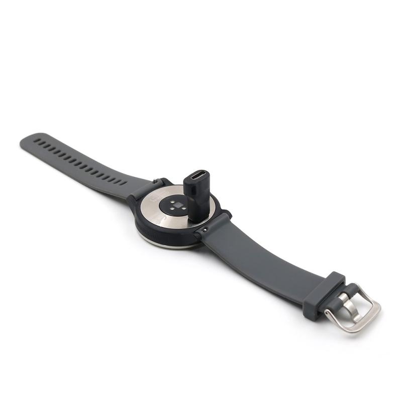 Replace a lost or damaged charging cable with this compact USB-C female to 4-pin charging adapter for Garmin smartwatches. Simply connect your own USB-C cable to the adapter and power your compatible Garmin watch without needing a dedicated charger. Its lightweight and pocket-sized design makes it ideal for travel, office, or daily carry, so you can charge your watch anywhere using a standard USB-C cable.