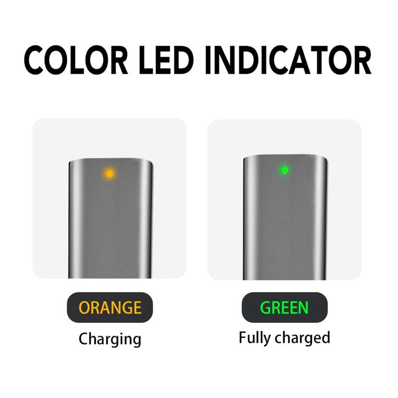 An integrated LED indicator provides clear visual feedback: Orange light - charging; Green light - fully charged.
