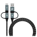4-in-1 Braided Charging Cable - Type-C, Lightning, Micro USB, Apple Watch - 1.2m