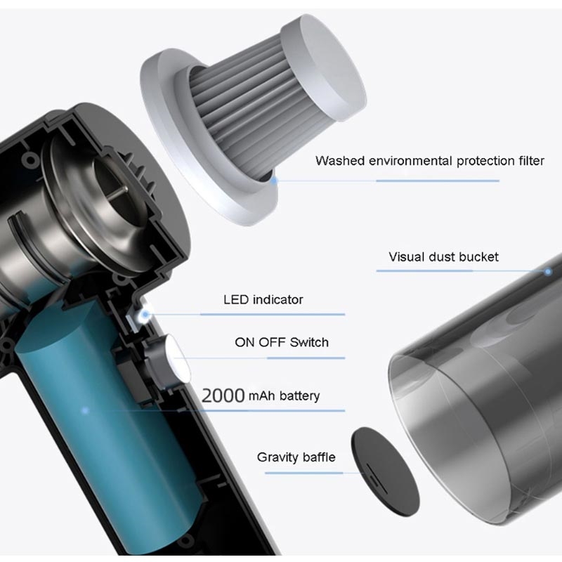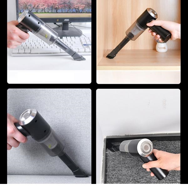The 6000Pa cordless car vacuum cleaner is a powerful, portable cleaning tool designed to keep your car, home, and office spotless. With 120W high-performance suction and a 6000Pa vacuum pressure, it effectively removes dust, crumbs, pet hair, soot, and even small water stains. The included multifunctional brush heads reach into tight gaps, car seats, floor mats, and luggage compartments for a thorough clean. Lightweight and cordless, it delivers up to 30 minutes of continuous use on a full charge, powered by a 2000mAh rechargeable battery. The large 0.5L dust cup means less frequent emptying, while USB charging provides convenient power from adapters, power banks, or car chargers.