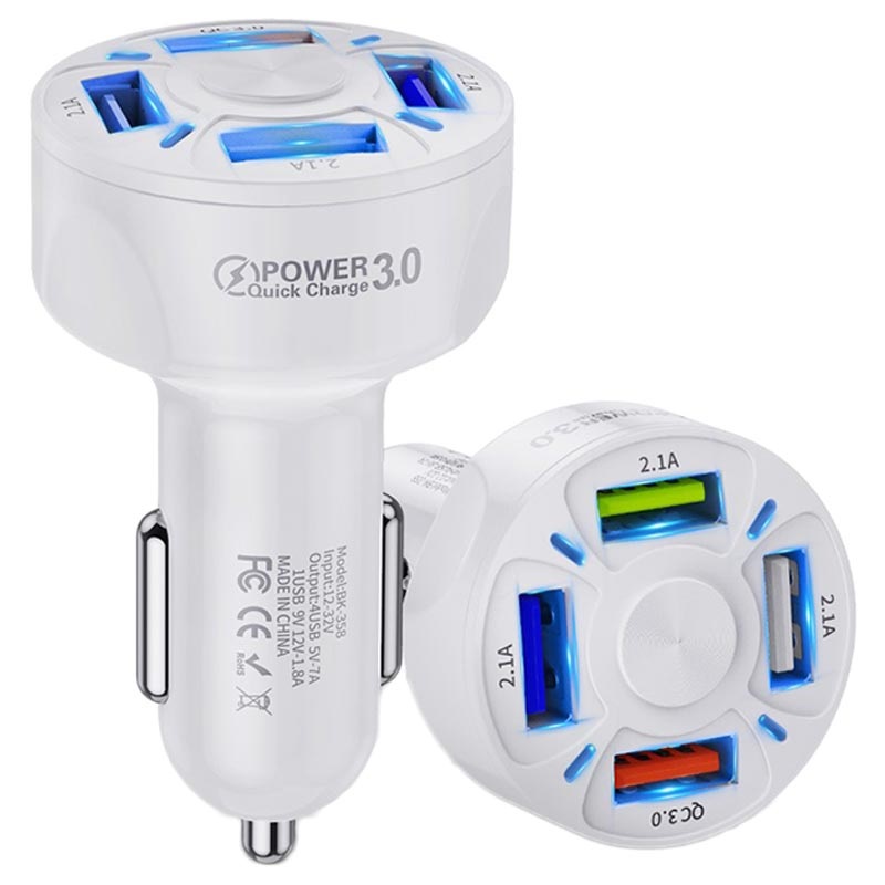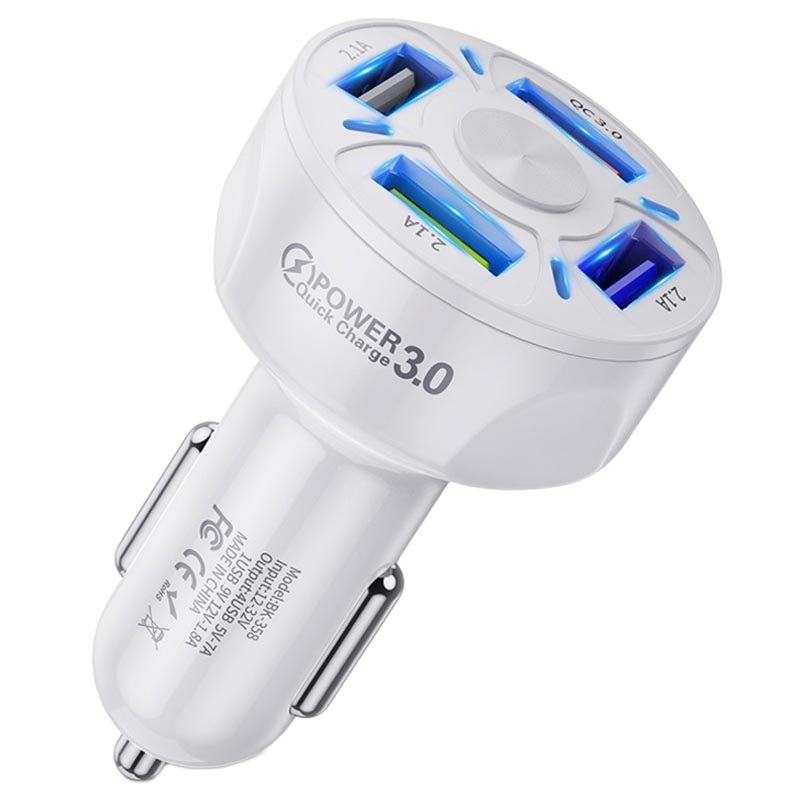 QC3.0 Fast Car Charger BK-358 - 4 x USB - White