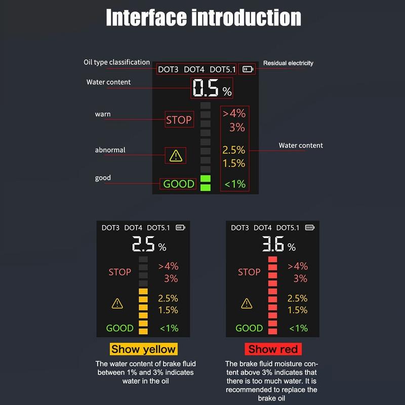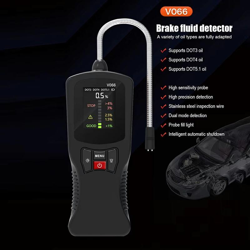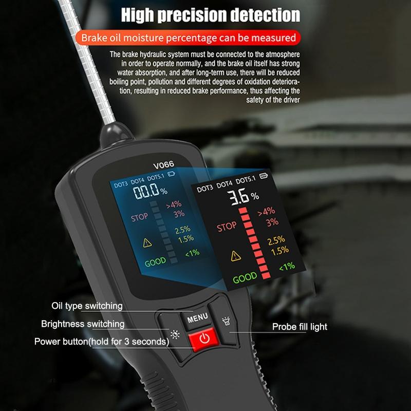 V066 Brake Fluid Tester for Car Diagnostics - DOT3 DOT4 DOT5.1 Water Content Checker with Color Display and High-Sensitivity Probe