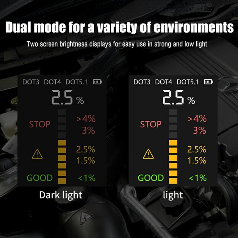 - Fast, accurate water content check for DOT3, DOT4 and DOT5.1 brake fluids