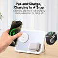 The V22 3-in-1 Wireless Charger combines a MagSafe-compatible charger, an LED makeup mirror, and a night light in one elegant device. This versatile gadget is designed to provide convenience and functionality in your daily routine.