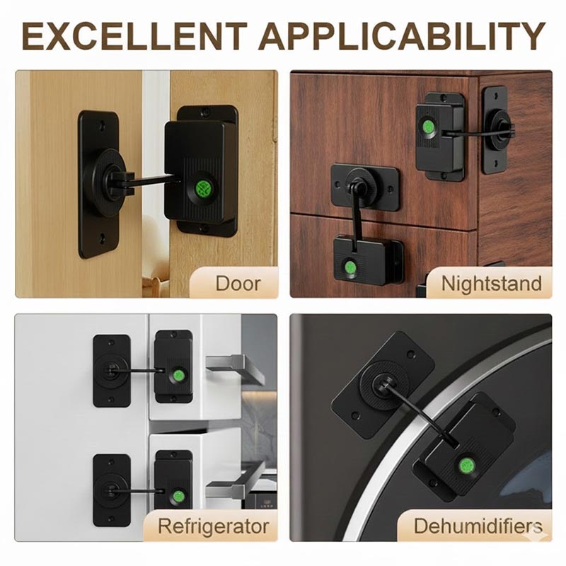 The V86 fingerprint childs safety lock is designed for versatile protection across household surfaces, including refrigerators, drawers, nightstands, cabinets, windows, washing machines and file cabinets. With both adhesive installation (no drilling) and screw mounting options available, it adapts easily to different setups.