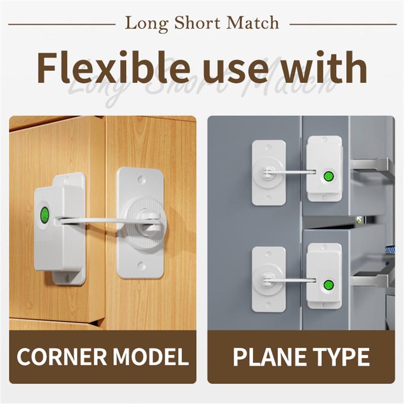 The V86 fingerprint childs safety lock is designed for versatile protection across household surfaces, including refrigerators, drawers, nightstands, cabinets, windows, washing machines and file cabinets. With both adhesive installation (no drilling) and screw mounting options available, it adapts easily to different setups.