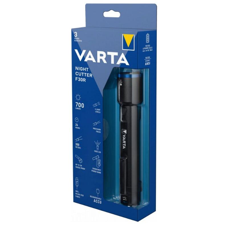Varta Night Cutter F30R Rechargeable LED Flashlight - 700 Lumens