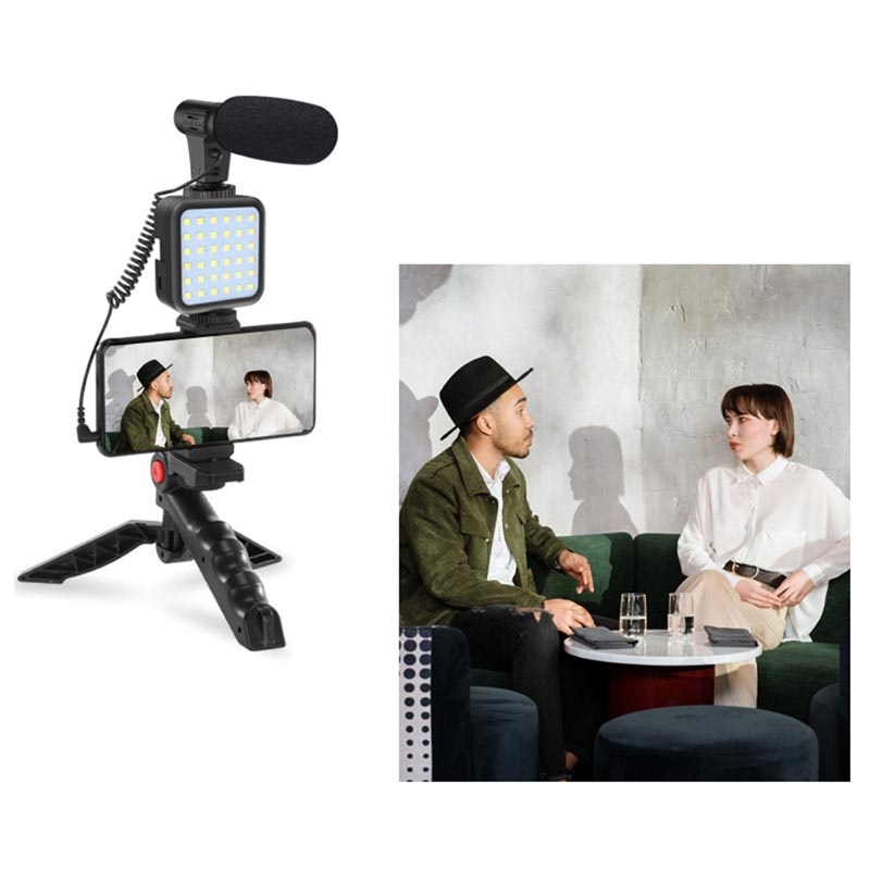 Vlogging Camera Kit for Live Streaming KIT-01LM - Mini Tripod, Microphone, Phone Holder, LED Light