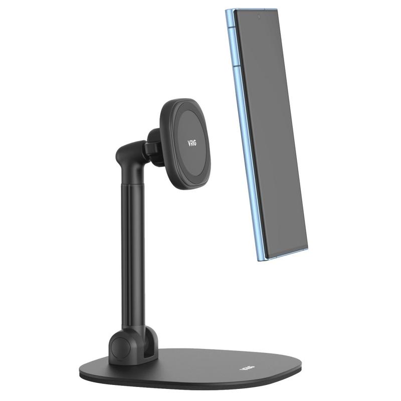 Vrig MG-04 Rotating Magnetic Desk Stand for iPhone 12-17 & MagSafe Cases – Adjustable 22-36 cm Carbon-Steel Phone Holder