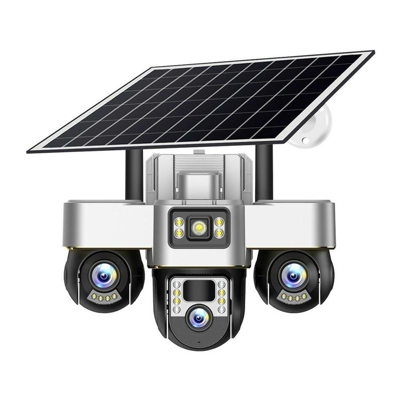 VTS30 V380pro Solar Triple-Lens Security Camera - 360 ° Wi-Fi / 4 G Surveillance System with 8 W Panel & 8 000 mAh Battery