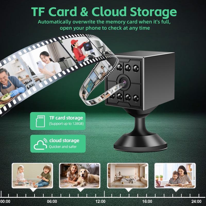 Mini WiFi cameras are popular because they are easier to place in smaller indoor spaces than larger fixed security cameras. A 130 degree viewing angle can also help reduce blind spots in compact rooms. Cameras with both TF card and cloud storage support are especially practical because users can choose local storage, remote backup, or a combination of both depending on their needs.