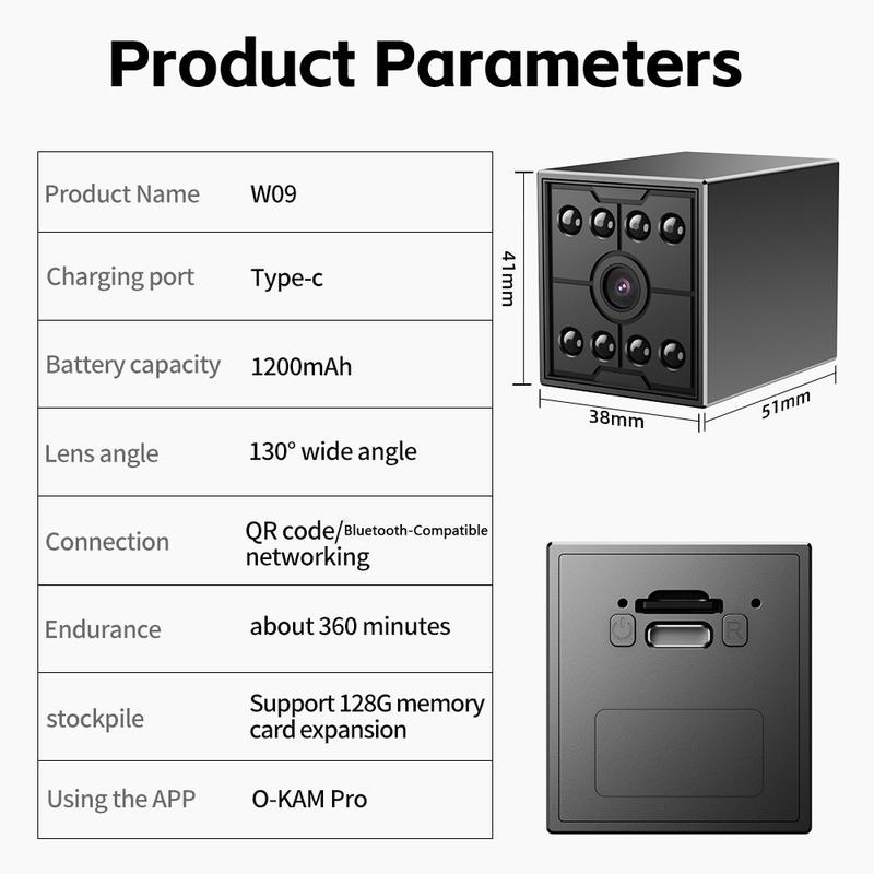 The W09 WiFi mini security camera is a compact indoor monitoring solution designed for users who want flexible remote viewing, motion alerts, and clear Full HD video in a small and easy-to-place format. With 1080P resolution, infrared night vision, two-way audio, and app-based remote access, it helps you keep an eye on important indoor spaces from your phone or computer.