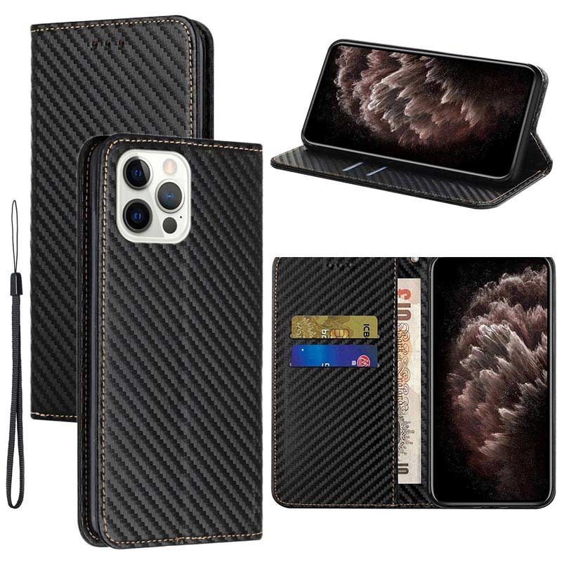 - Eye-catching carbon fiber wallet case for iPhone 14 Pro