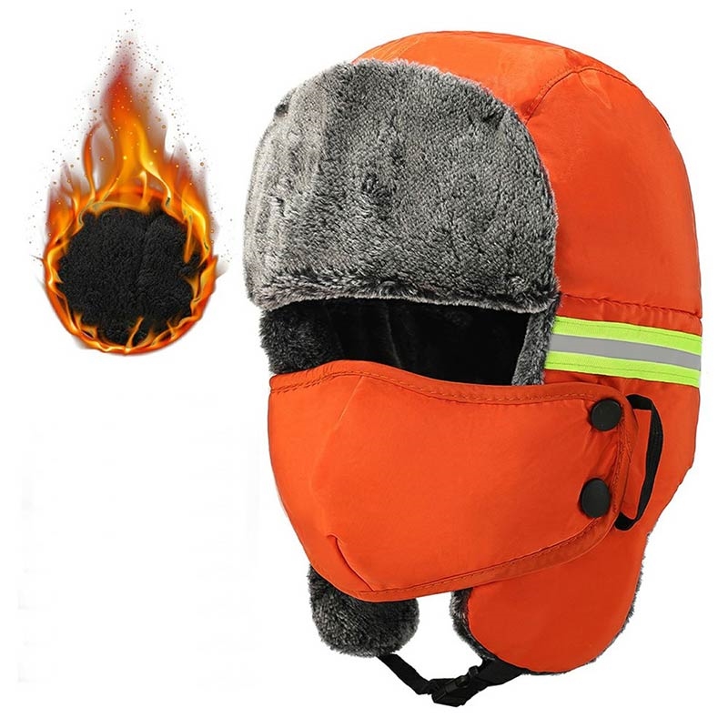 Winter Hat with Reflective Strips - Fleece-Lined Protective Trapper Hat