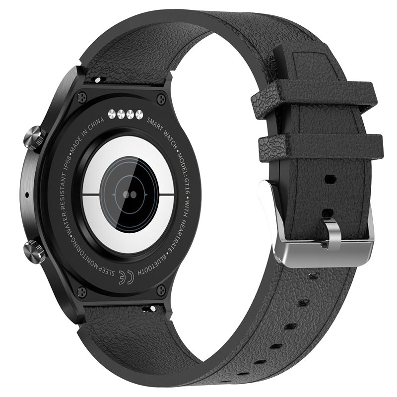 The sports smartwatch GT08 is more than a smartwatch with all its healthcare functions. On its high-quality 1.32" IPS TFT, you can continuously monitor your heart rate, the number of steps you made, sleep quality, and much more. The sports smartwatch is IP68 waterproof certified. Thanks to the elegant look and many display themes, the Bluetooth smartwatch is a perfect detail for any occasion and outfit.