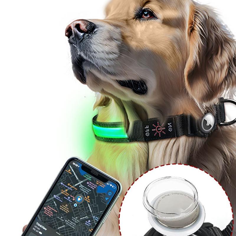 LED Dog Collar with Case for Apple AirTag 1/2 - Waterproof Anti-Lost Collar with Rechargeable Light