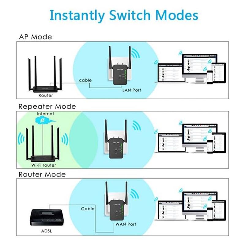 The device supports Router mode, Repeater mode and Access Point (AP) mode, allowing it to adapt to different network requirements. In AP mode, it can convert a wired LAN connection into a wireless network for laptops, tablets and smartphones.