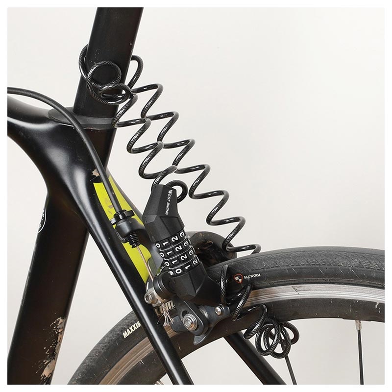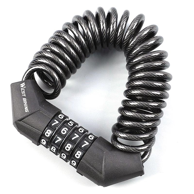 Protect your bike from theft with this West Biking anti-theft security bike padlock Code. You can set up a thousand different combination code, ensuring the security with a 4-code password lock. The helmets can be easily locked too on the bike by wrapping the retractable cables around. The default password of the West Biking bike lock is 0000, and you can change it easily (unlock it, turn it for 90-degree, set the code, and lock it).