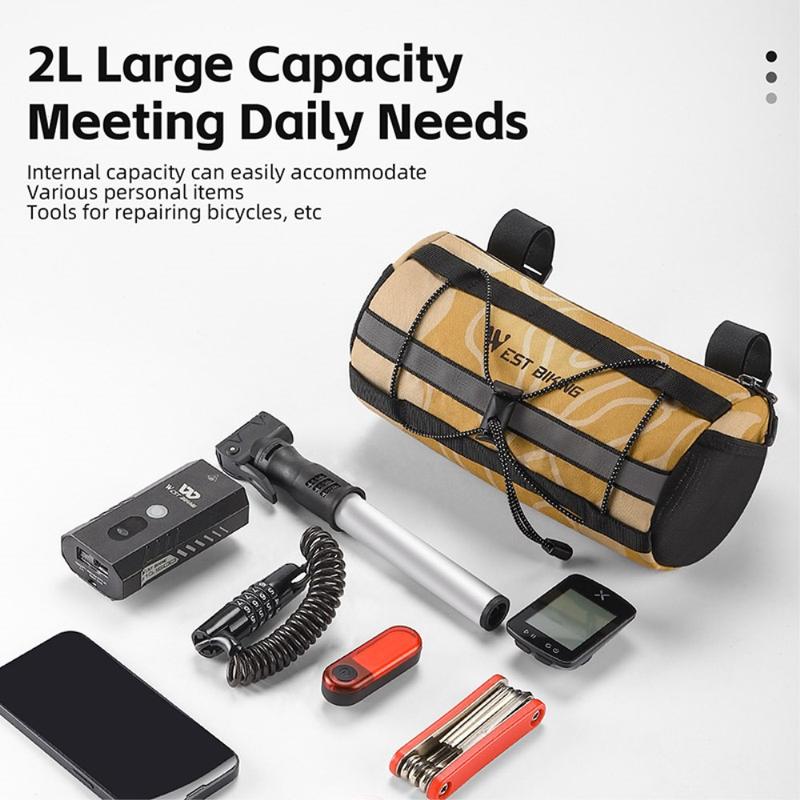 2L large capacity offers enough space for repair kits, keys, wallets, sunglasses, power banks, etc.
