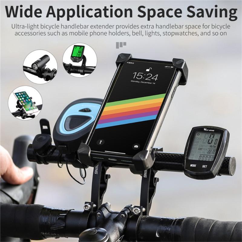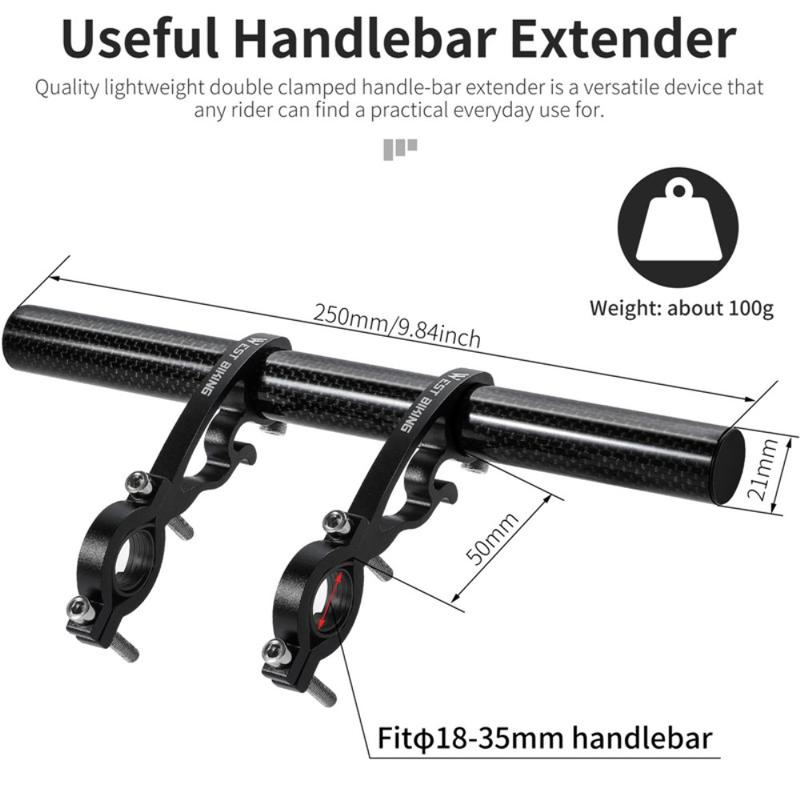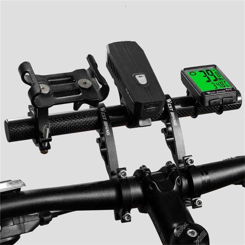 WEST BIKING Cycling Carbon Fiber Bicycle Handlebar Extender Double Clamp Bracket for Bike Light GPS Computer