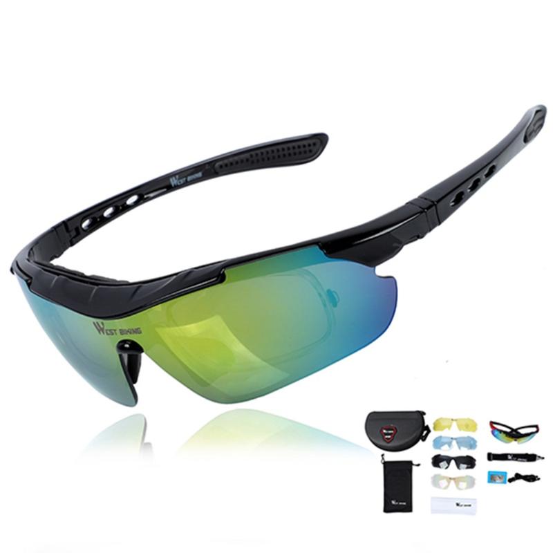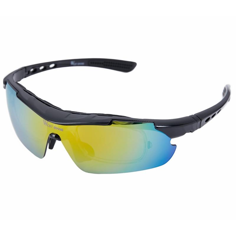 WEST BIKING Motorcycle Bike Riding Glasses Multilayer Mirror Lens Powersports Sunglasses Goggles - Black