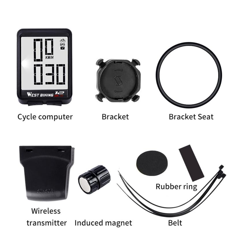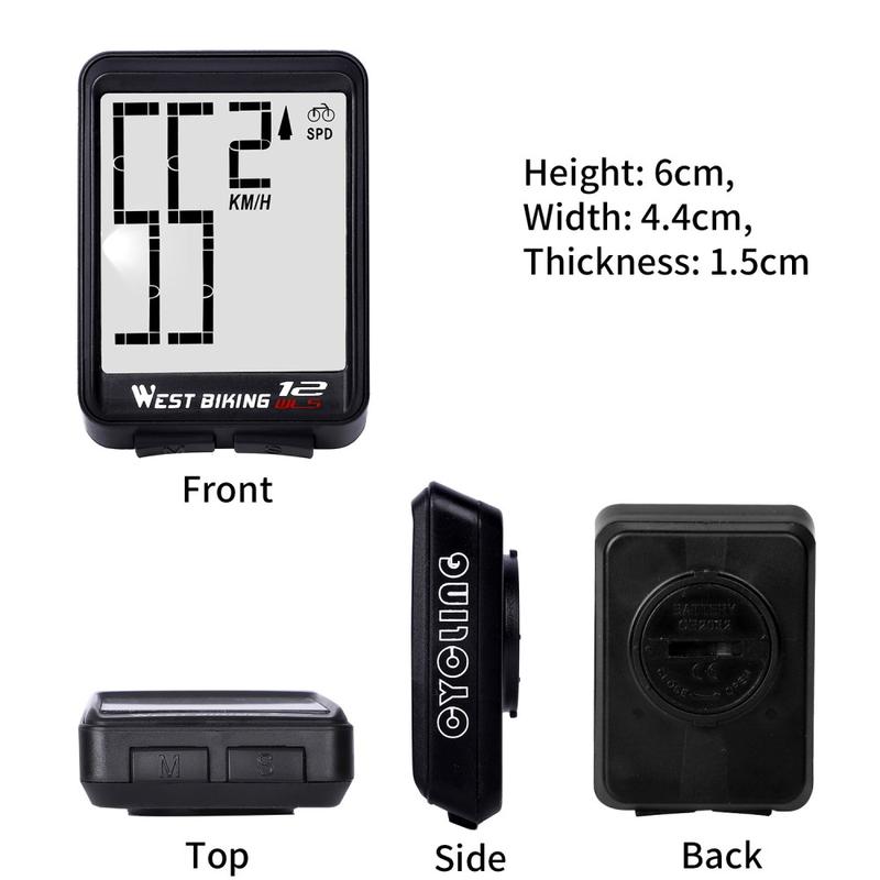 WEST BIKING MTB Road Bike Computer Screen Backlight Waterproof Wireless Multi-function Cycling Speedometer - Black