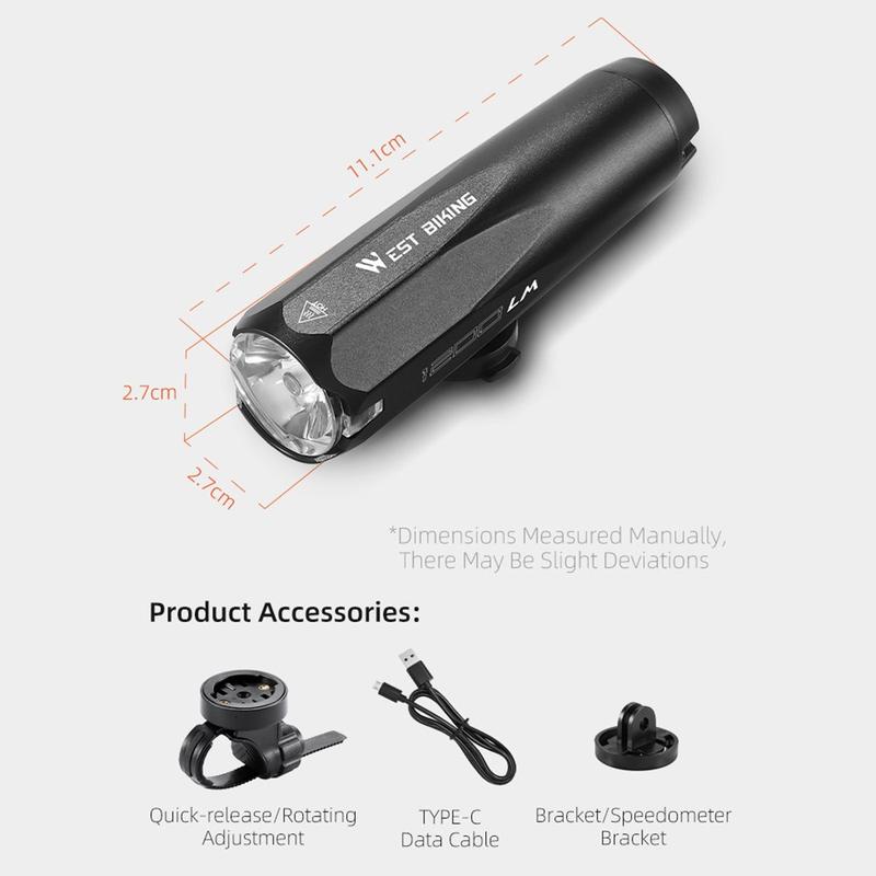 WEST BIKING YP0701404 Multifunctional Bicycle Light Sensing 600 Lumens Type-C Headlight Road Bike Light
