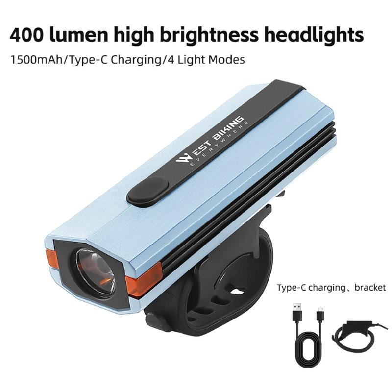 WEST BIKING YP0701407 Plastic Bicycle Headlight 400LM Night Cycling Torch Bike Front Light - Blue