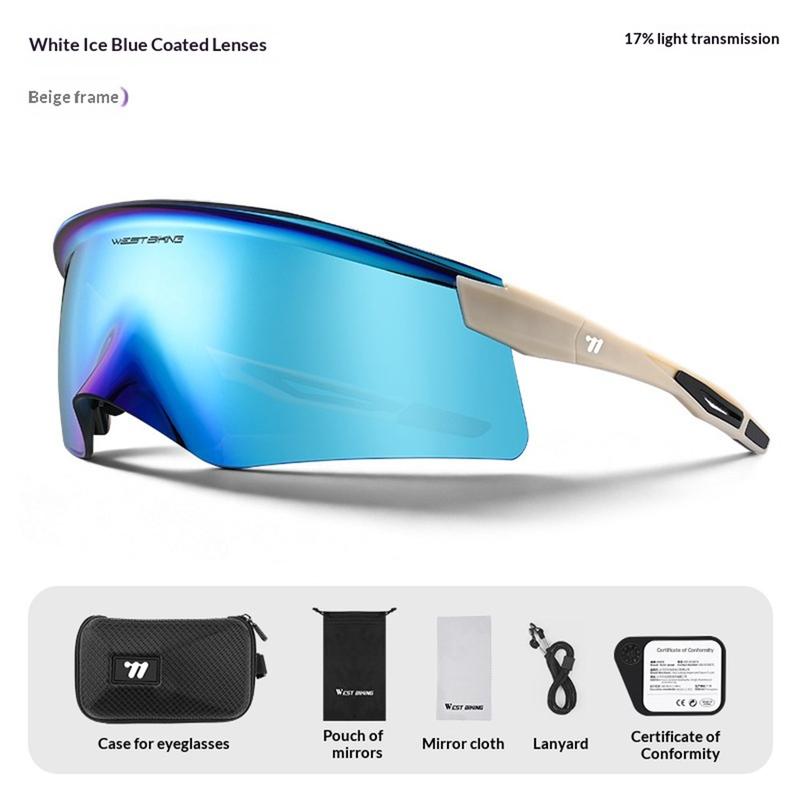 West Biking YP0703195 UV400 Cycling Sunglasses with Adjustable Temples - Ice Blue / Beige