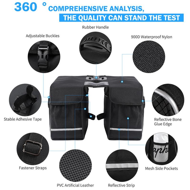 With a total 30-litre capacity, this double-side pannier provides ample room for clothing, groceries, tools and cycling accessories. Perfect for long-distance touring, daily commuting or shopping runs.