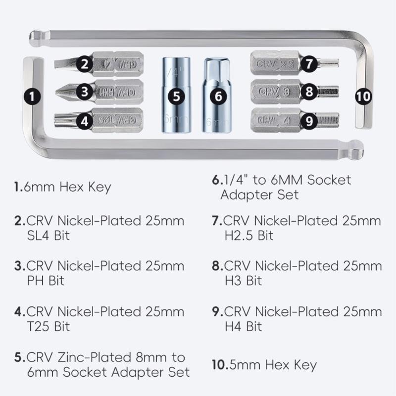 - 10-in-1 Design: Incorporates Allen wrenches, screwdrivers, and other common repair tools for versatile use.
