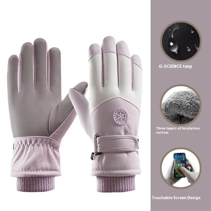 Windproof Outdoor Winter Touch Screen Gloves - Women - Purple / White