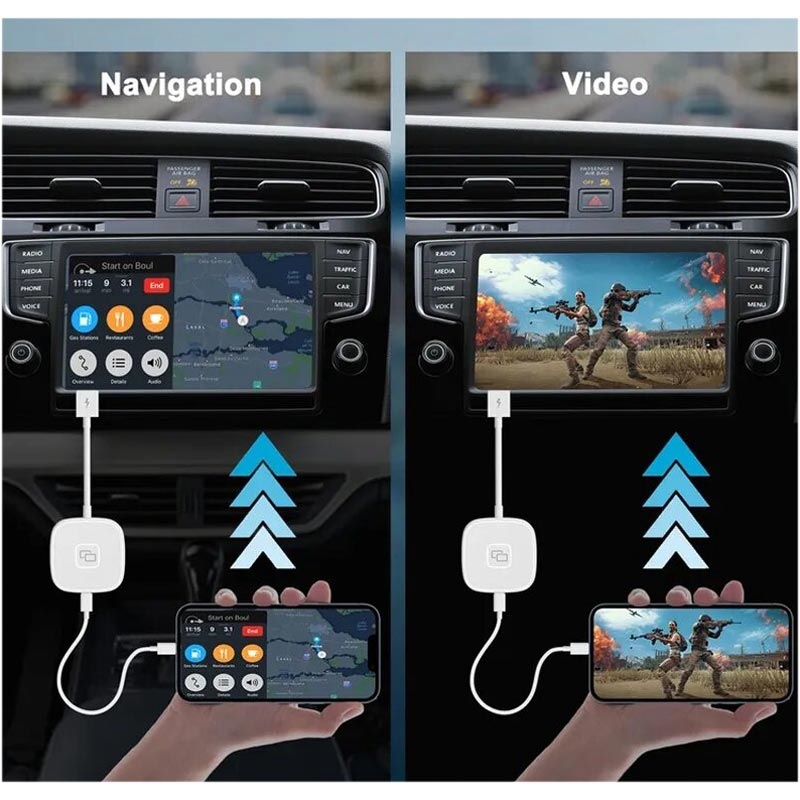 Connect your iPhone with your car and enjoy in multiple functions that the THT-020-7 adapter offers! With its plug-and-play function, it doesn't require any application download, but be sure that your car has a built-in wired connection to CarPlay. You can display on your car's screen navigation, videos, games, pictures, also social media apps such as Instagram, YouTube, Facebook, and Twitter (it does not support paid apps like Netflix, Amazon, and Hulu).