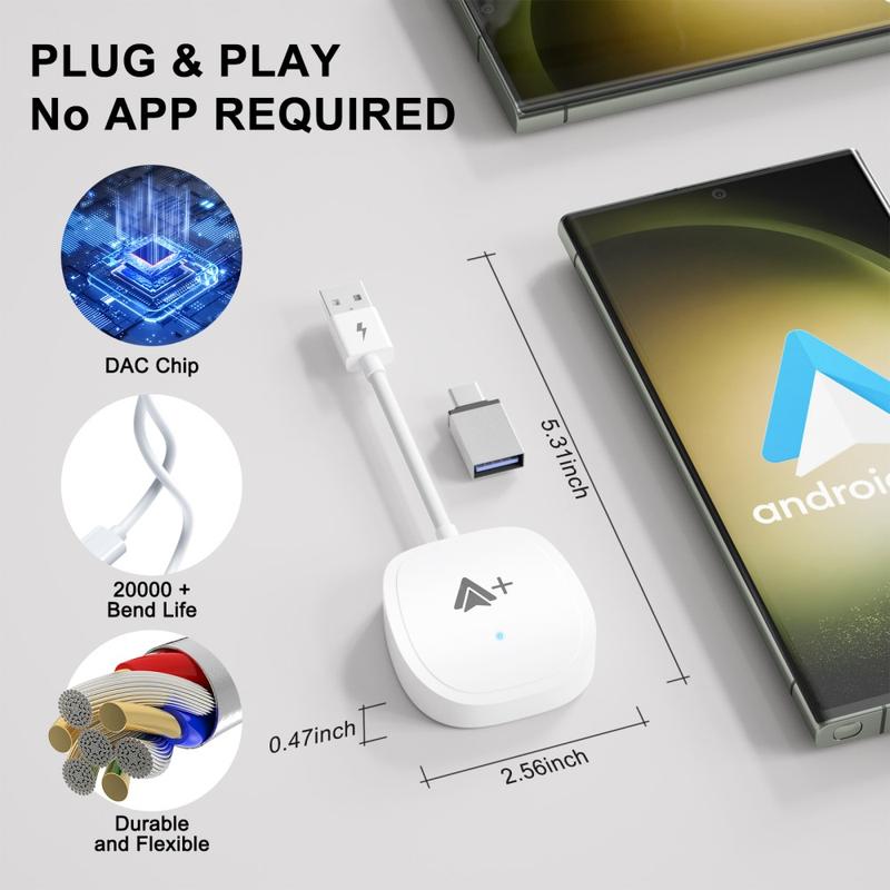 Upgrade your driving experience with the 020-7++ Wireless Android Auto Adapter. This compact USB dongle transforms your car’s wired Android Auto system into a wireless one, allowing seamless access to your favorite apps and smart features. Enjoy streaming from YouTube, Netflix, and TikTok on your car’s display and stay connected with Bluetooth and Wi-Fi integration. Compatible with various Android devices, this adapter enhances both functionality and entertainment in your vehicle.