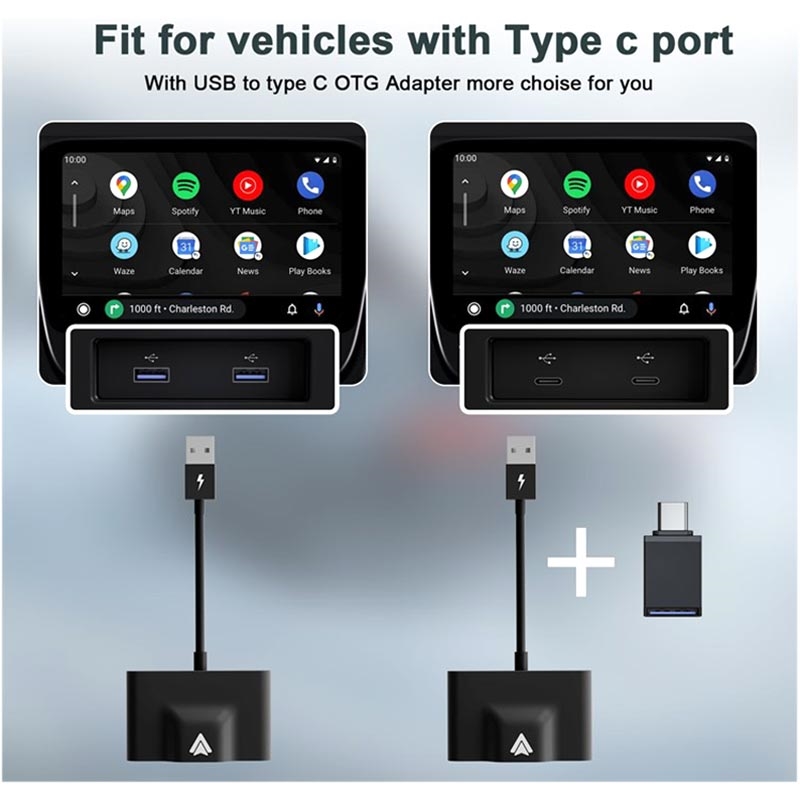 Wireless Android Auto Adapter - USB, USB-C, Bluetooth, WiFi 5GHz
