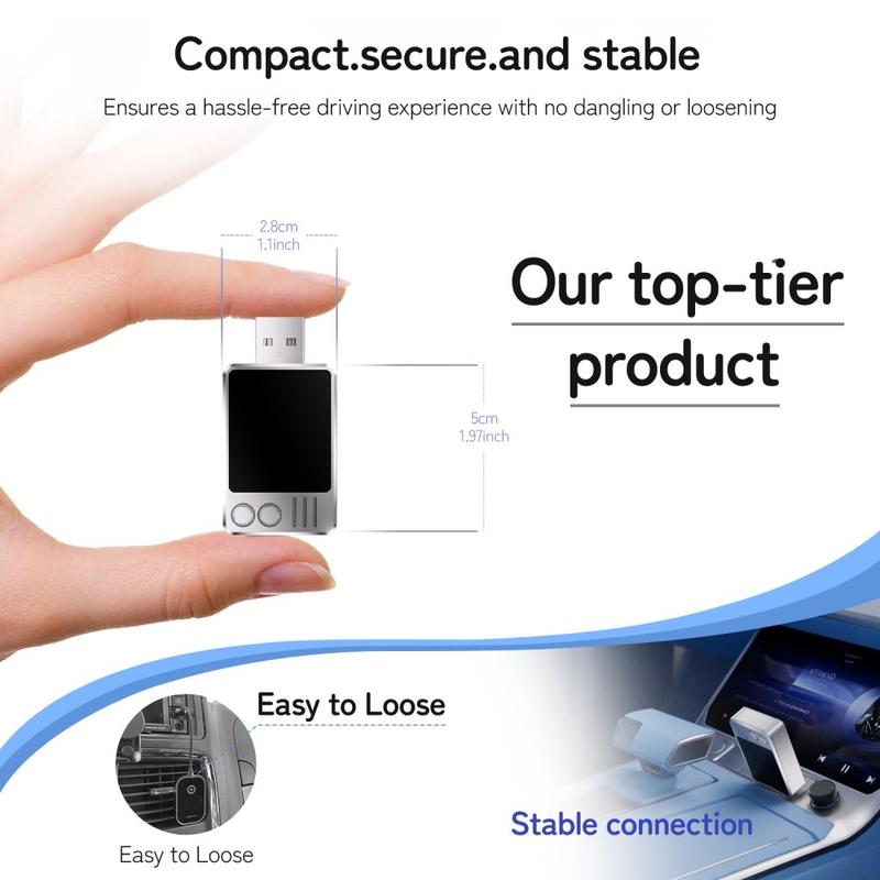 Wireless CarPlay Adapter for iPhone – USB Dongle with Dual-Band WiFi and Bluetooth 5.3