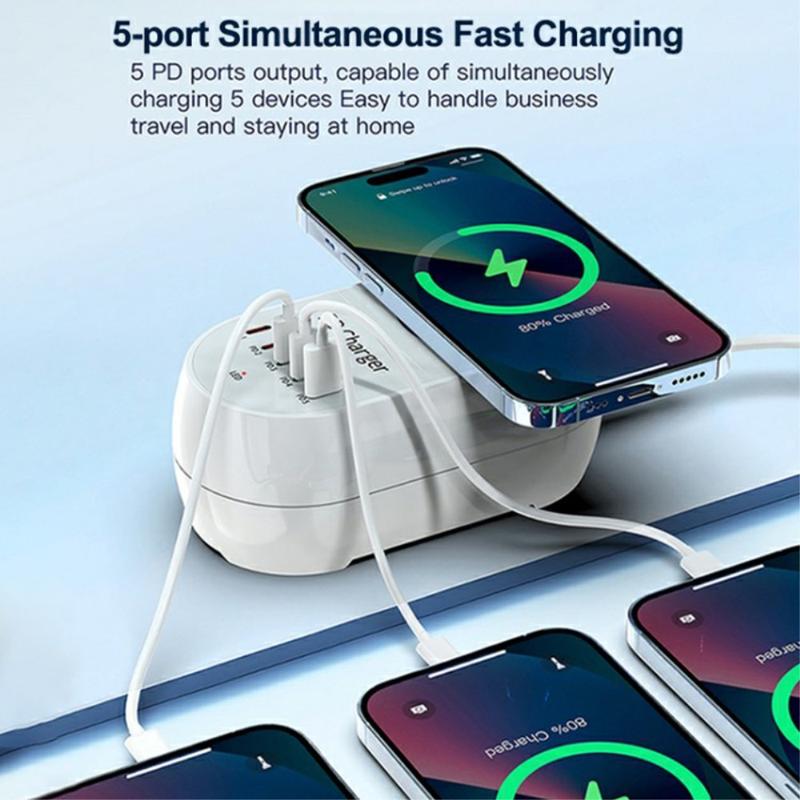 Supports simultaneous output of 5 PD ports, easily solving the problem of charging multiple devices